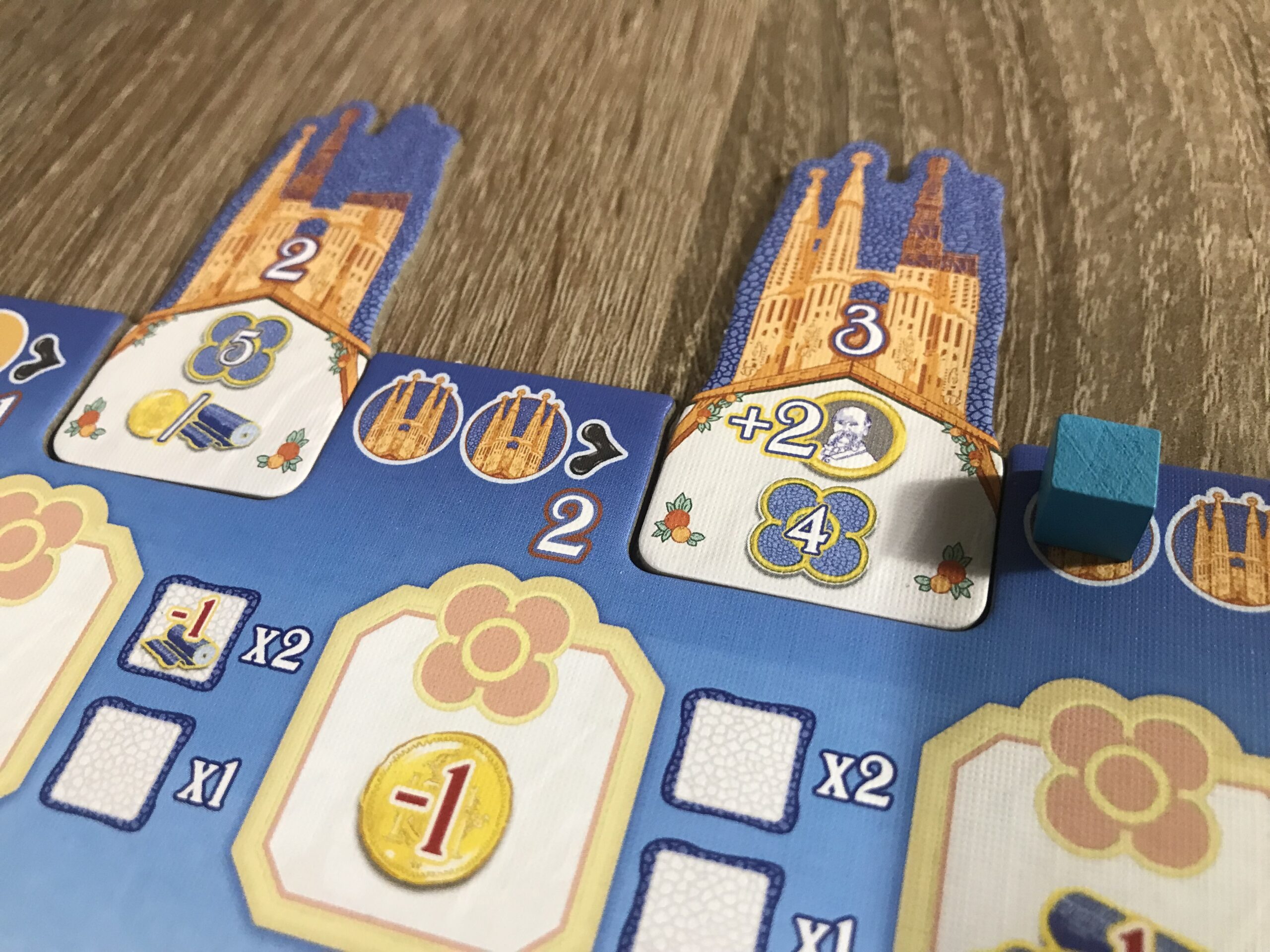 Jest wyścig o budynki publiczne i znaczniki Sagrady. To gdzie sami postawimy nasze znaczniki może z jednej strony zablokować pole, ale z drugiej otworzyć nowe opcje dla innych. No i co najważniejsze, to gracze mają wpływ na liczbę tur danej rozgrywki, co powoduje, że cały czas musimy bacznie obserwować tor czasu.