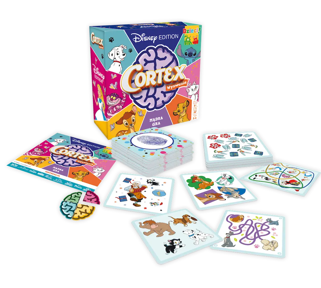 Cortex Disney to nie lada gratka dla małych i dużych fanów bajek Disneya, którzy chcą spróbować swoich sił w rozwiązywaniu łamigłówek. W każdej rundzie na stole pojawia się karta z zadaniem. Ten, kto rozwiąże je jako pierwszy, musi przykryć ją ręką i głośno podać odpowiedź. Wśród wyzwań znajdziecie labirynty, lustrzane odbicia i wiele, wiele więcej!