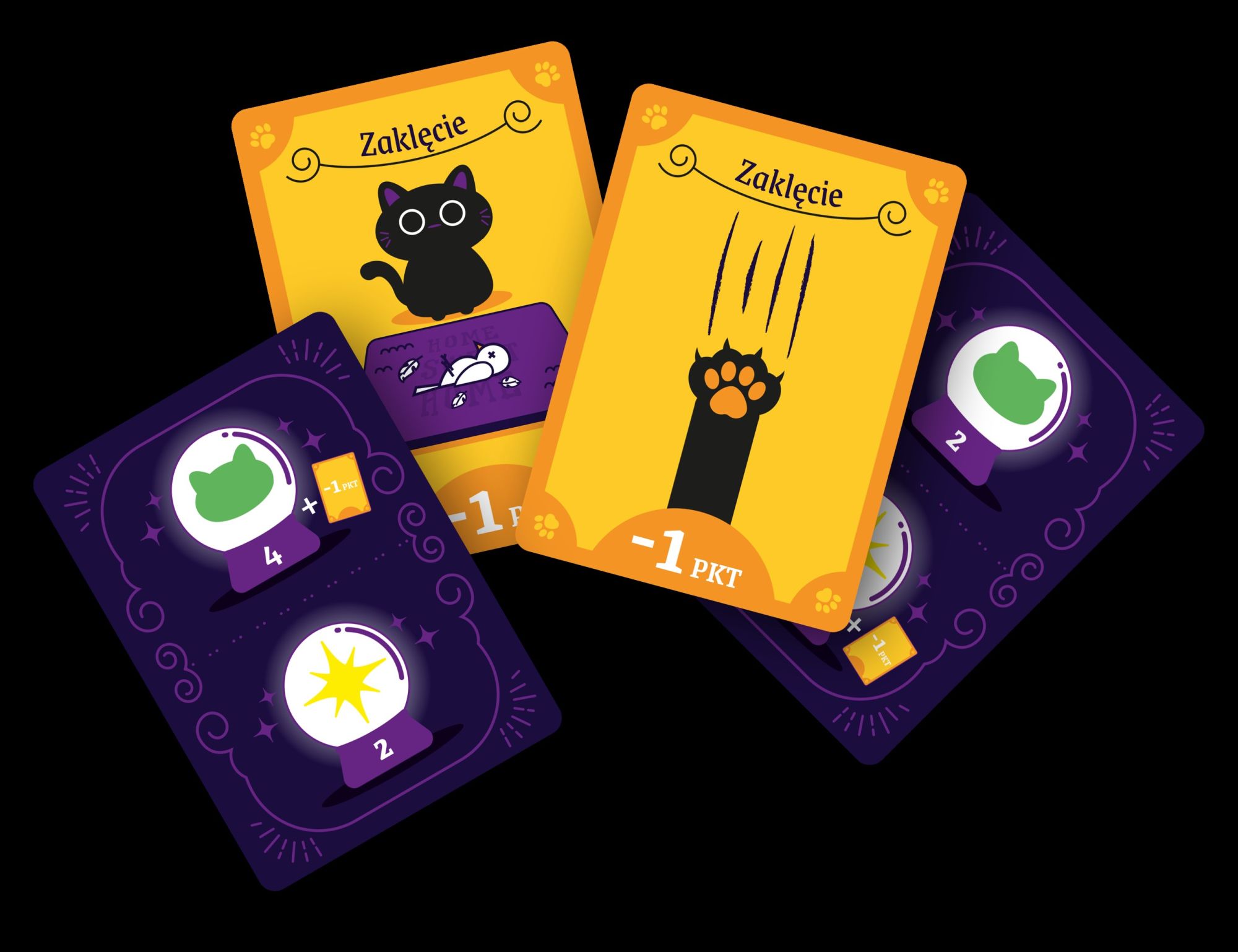 Znajdź właściwe słowo – we właściwym momencie! Otwórz pudełko i odkryj tajne hasło, a następnie pomóż innym je odgadnąć na podstawie dokładnie tylu wskazówek, ile wskazuje karta. Jeśli przeciwnicy domyślą się zbyt szybko, zgarną Ci punkty sprzed nosa, ale uważaj – starannie dobieraj słowa, bo jeśli Twoje podpowiedzi zostaną uznane za nieprecyzyjne, możesz paść ofiarą Kociej klątwy!