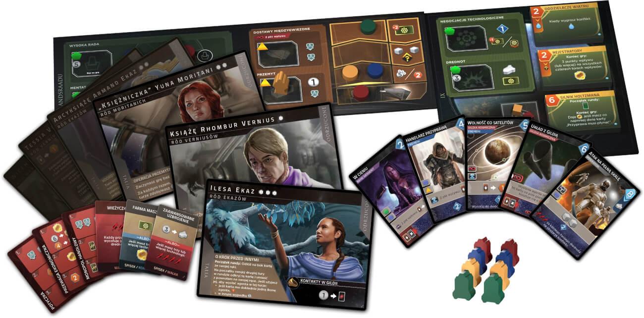 Każdy z graczy rozpoczyna grę z identyczną talią startową, oraz kartą Lidera, która daje unikalną umiejętność. W miarę zdobywania nowych kart i kształtowania talii wasze wybory określą wasze mocne i słabe strony. Karty pozwalają wysyłać agentów do różnych miejsc na planszy, więc na strategię wpływa ewolucja samej talii. Możesz zostać potęgą militarną, zdolną do rozmieszczenia większej liczby żołnierzy niż przeciwnicy, lub możesz zdobyć karty, które otwierają drzwi do czterech frakcji politycznych reprezentowanych w grze: Cesarza, Gildii Kosmicznej, Zakonu Bene Gesserit i oczywiście Fremenów.