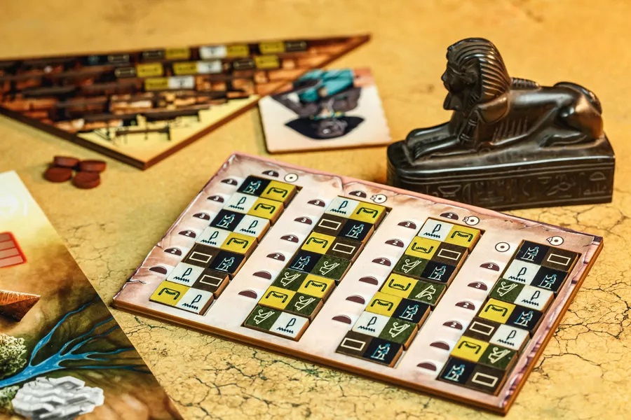 W trakcie gry podróżujemy też łódką po Nilu, a jej pozycja na rzece również określa kolejność graczy.