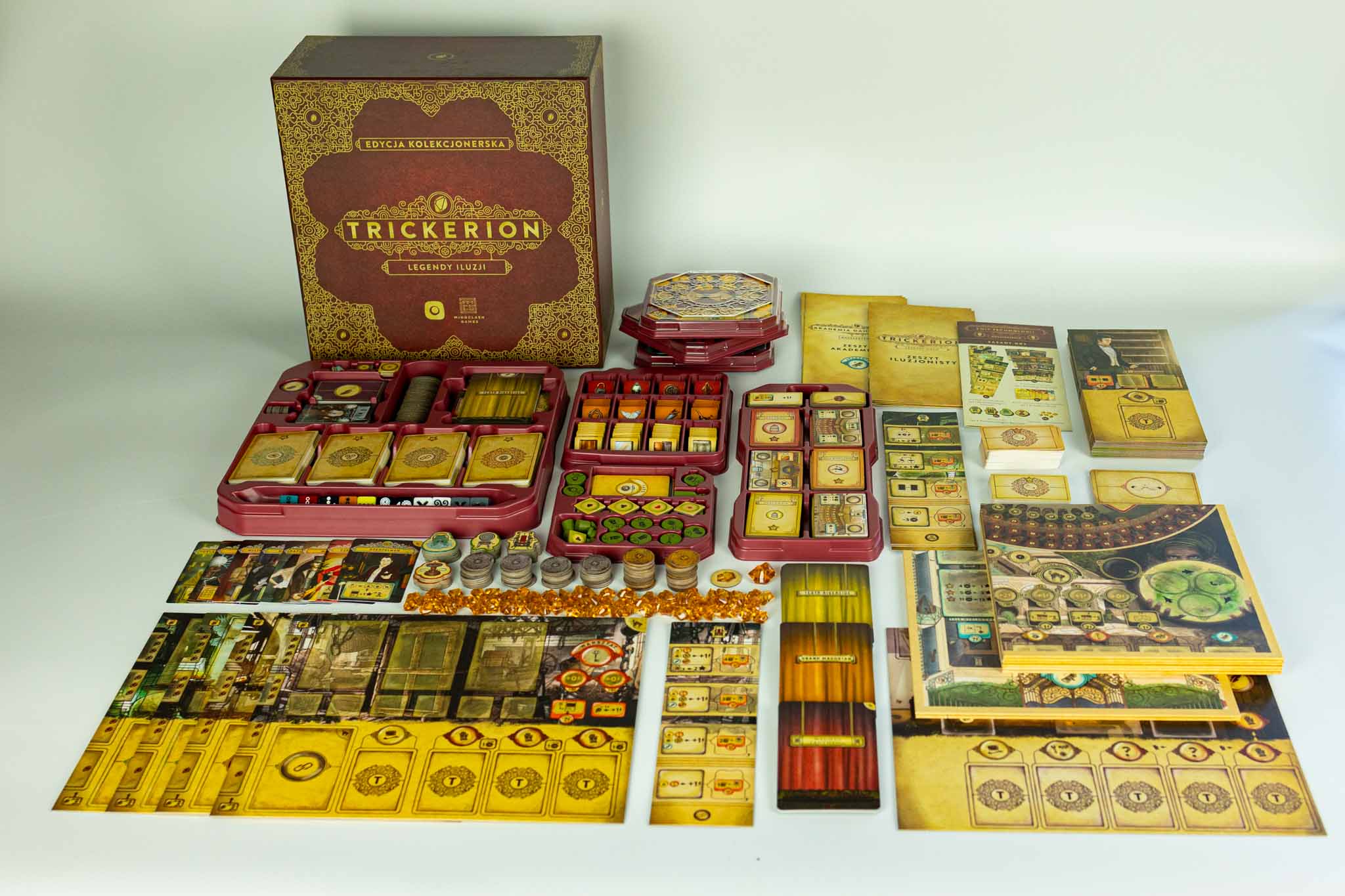 Wydawnictwo Portal Games uruchomiło dziś przedsprzedaż bardzo wyczekiwanego przez zaawansowanych graczy Trickeriona. Sugerowana cena detaliczna wynosi 599,95 zł, a u wydawcy tytuł ten zamówić możecie już za 479,95 zł. Dziś także ruszyła przedsprzedaż w pozostałych sklepach z grami planszowymi. Warto zatem rozejrzeć się i wybrać najbardziej dla siebie korzystną ofertę. Wiemy też, kiedy gra trafi do sprzedaży. Oficjalna data premiery to 21.11.2024 roku. Zamawiając Trickeriona bezpośrednio w Portalu, grę otrzymacie przed oficjalną premierą.