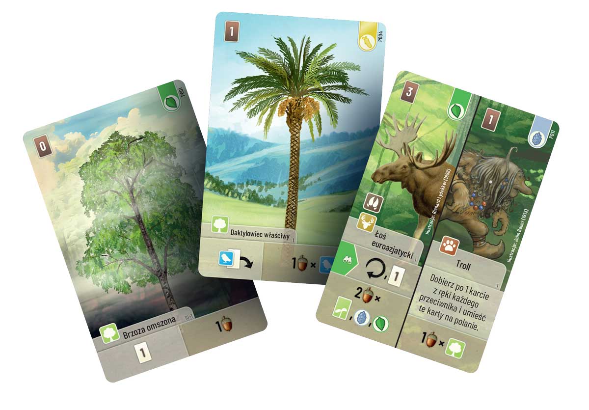 W pudełku znajdziecie 55 nowych kart. Część z nich to karty automy, które pozwolą graczom na samotne eksplorowanie lasu.