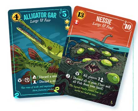 Pojawi się cała masa nowych kart z potwornościami, które będziecie mogli wyłowić z morza. Karty dodajecie do talii z podstawki. Zamiast wędkować na morzu, możecie spróbować swoich sił na lądowych obszarach wodnych. Tu jednak szykujcie się na kolejną porcję koszmarów, bo potworności które kryją się w słodkich wodach mogą was niejednokrotnie zaskoczyć!