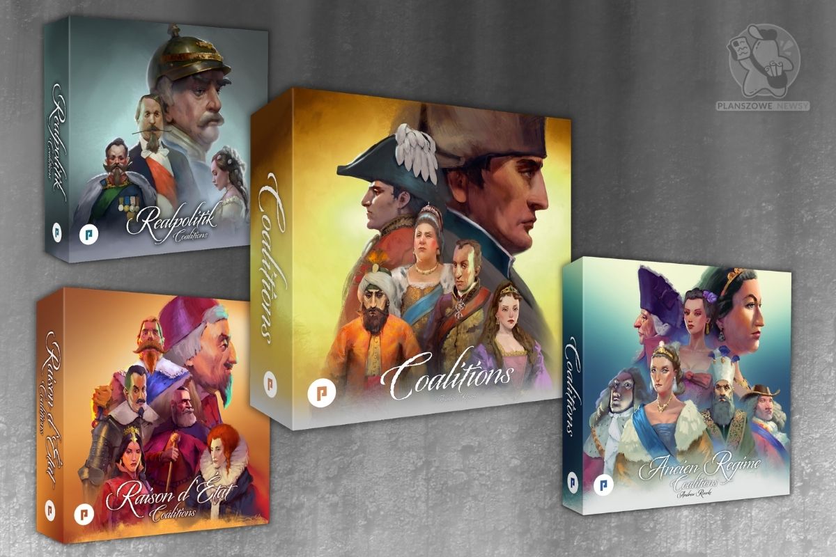 ◾ Coalitions: Realpolitik – dodatek i jednocześnie samodzielny tytuł do 4 graczy. Tematycznie przenosimy się do epoki zdefiniowanej przez wojnę prusko-austriacką (1866) oraz wojnę francusko-pruską (1871), które zakończyły proces zjednoczenia Niemiec.