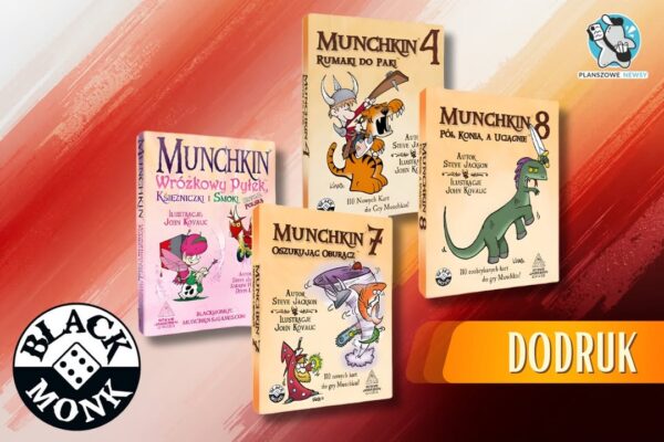 Wydawnictwo Black Monk Games poinformowało, że oczekiwane dodruki rozszerzeń do gry Munchkin trafiły już na ich magazyn i są dostępne w sklepie internetowym.
