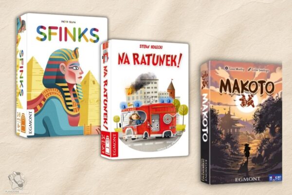 Rozpoczął się nowy rok, a wraz z nim wydawcy zaczynają ujawniać swoje nowości na 2026 oraz uruchamiać przedsprzedaże. Nie inaczej jest tym razem. Wydawnictwo Egmont Polska zapowiedziało aż trzy nowe tytuły: Makoto, Sfinks oraz Na ratunek. Data premiery powyższych gier, jak poinformował wydawca, to 25 lutego, a więc już całkiem niedługo.